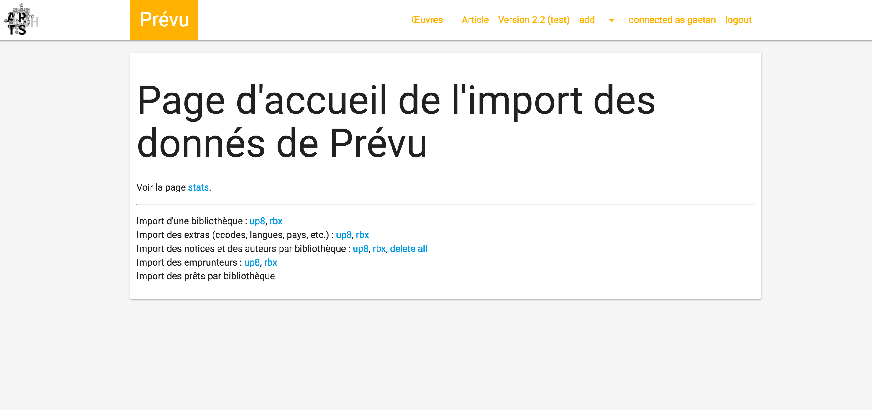 Import automatisé, page d'accueil du prototype : capture d'écran